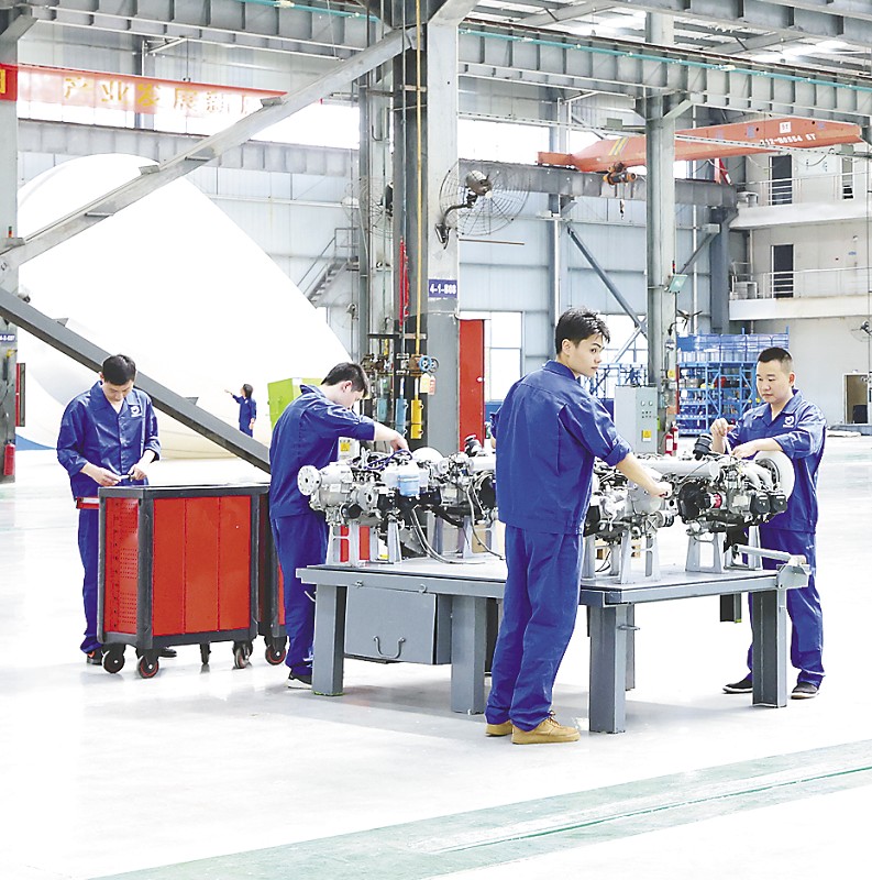 大图:沅江市腾达飞艇制造园建设项目的工作人员在调试机器。 吴巧 摄