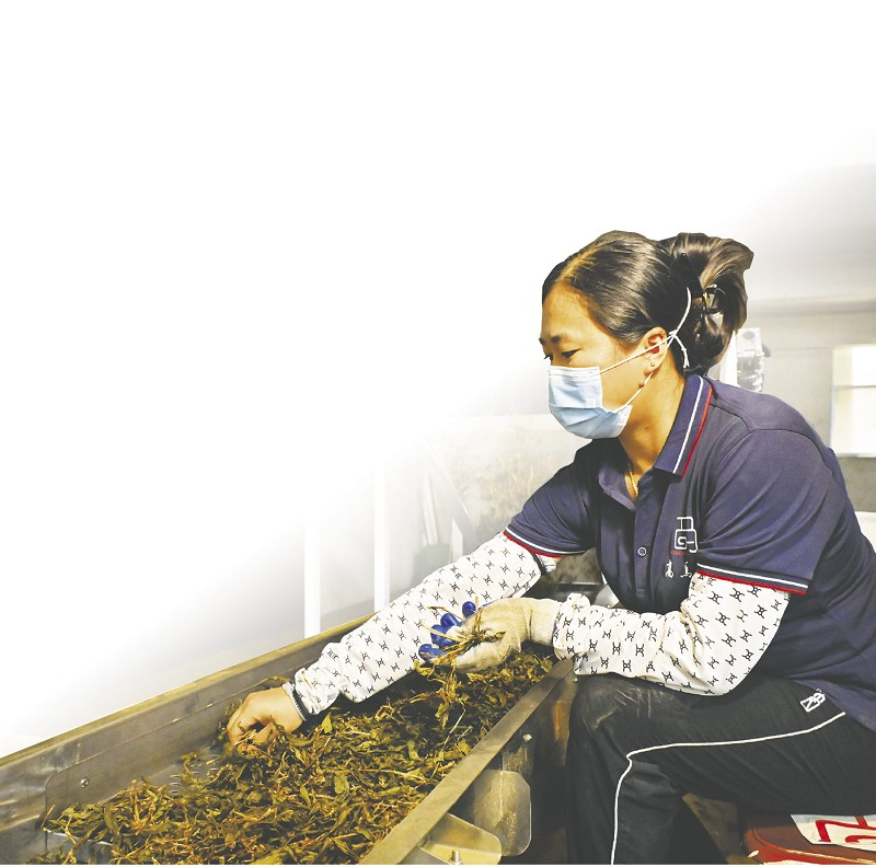 湖南高马山农业有限公司工人在毛茶色选车间工作。吴胜琳摄