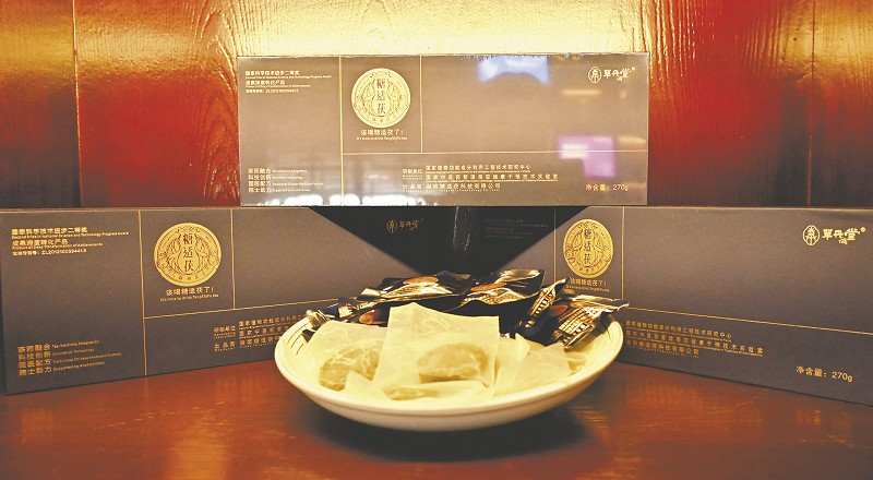 国家植物功能成分利用工程技术研究中心、国家中医药管理局亚健康干预技术实验室研制,湖南高家山茶业有限公司生产的“糖适茯”八脉通茯茶。 吴胜琳摄