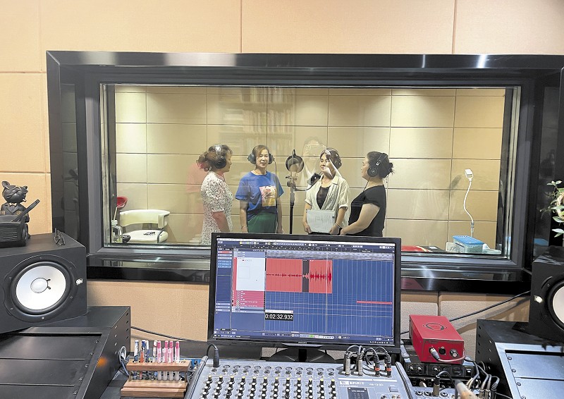 队员在录音棚里录音。