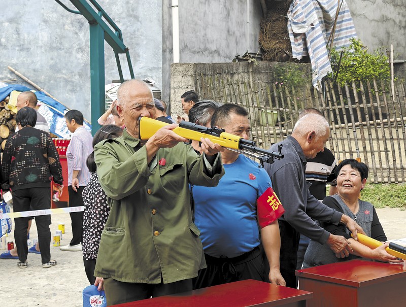 ▲退役老兵参加“神枪手打气球”活动。甘果摄