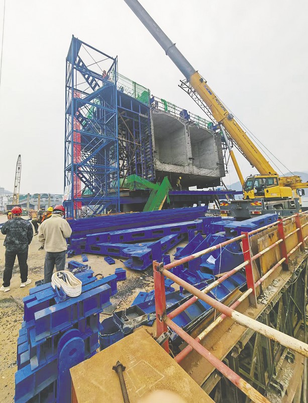 安化经开区本部园区连接龙塘发展方向区的鹊坪渡改桥建设现场。
