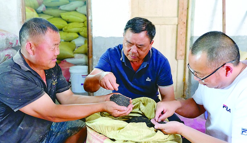 农技专家对种粮大户今年的菜籽进行检查。 卢静摄