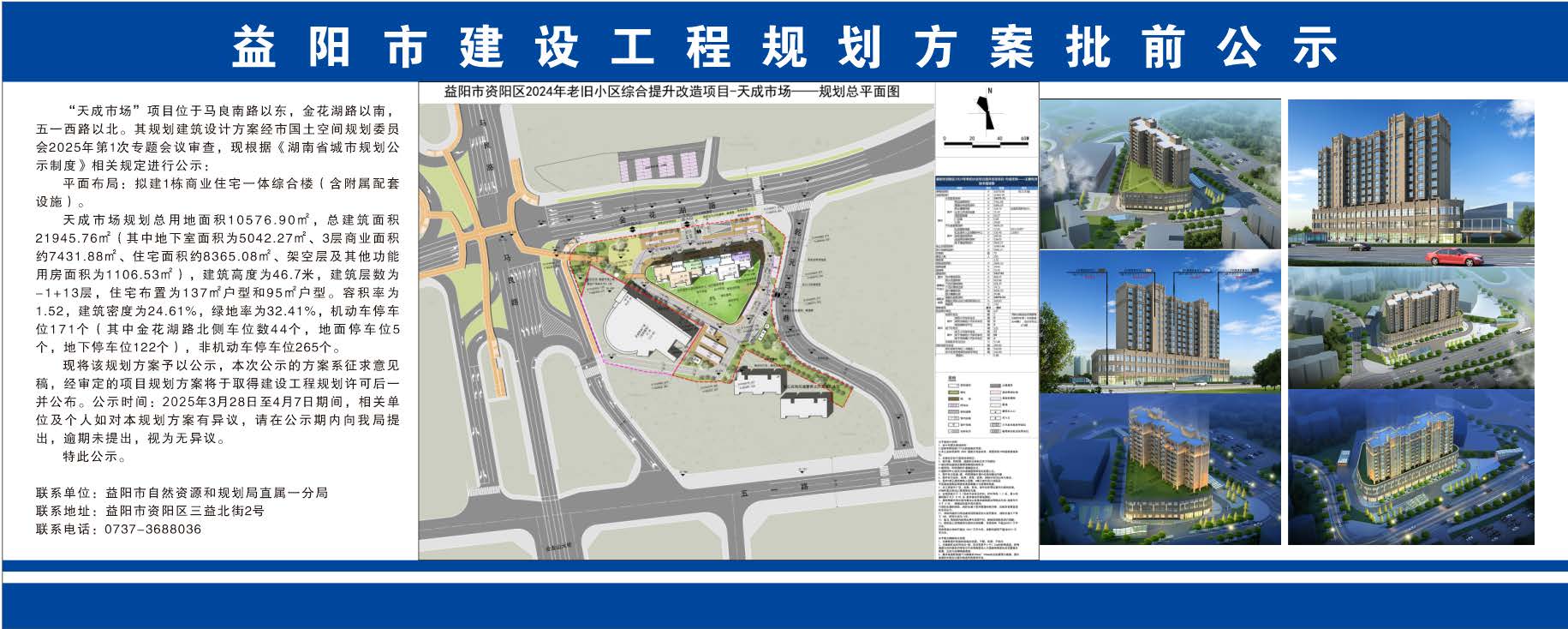 益阳市资阳区2024年老旧小区综合楼提升改造项目(天成市场)规划及建筑设计方案批前公示