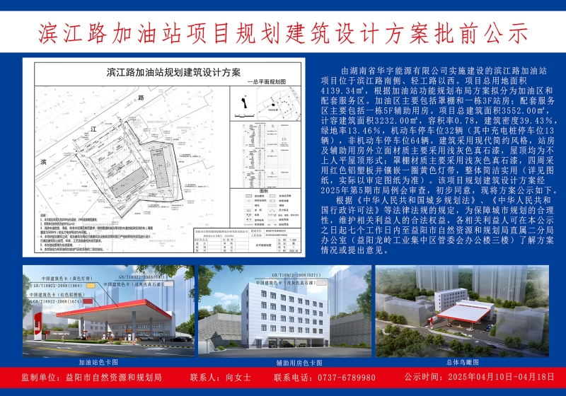 滨江路加油站项目规划建筑设计方案批前公示