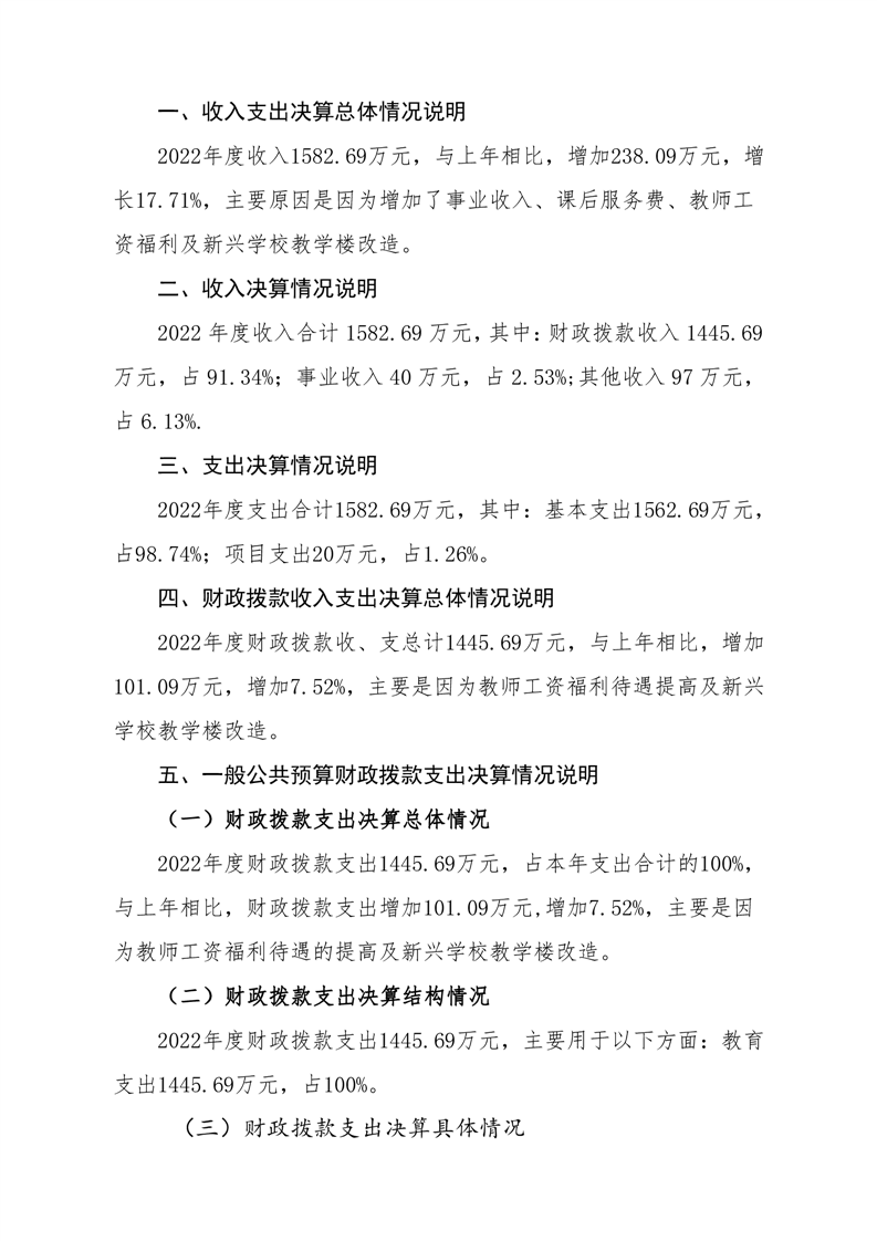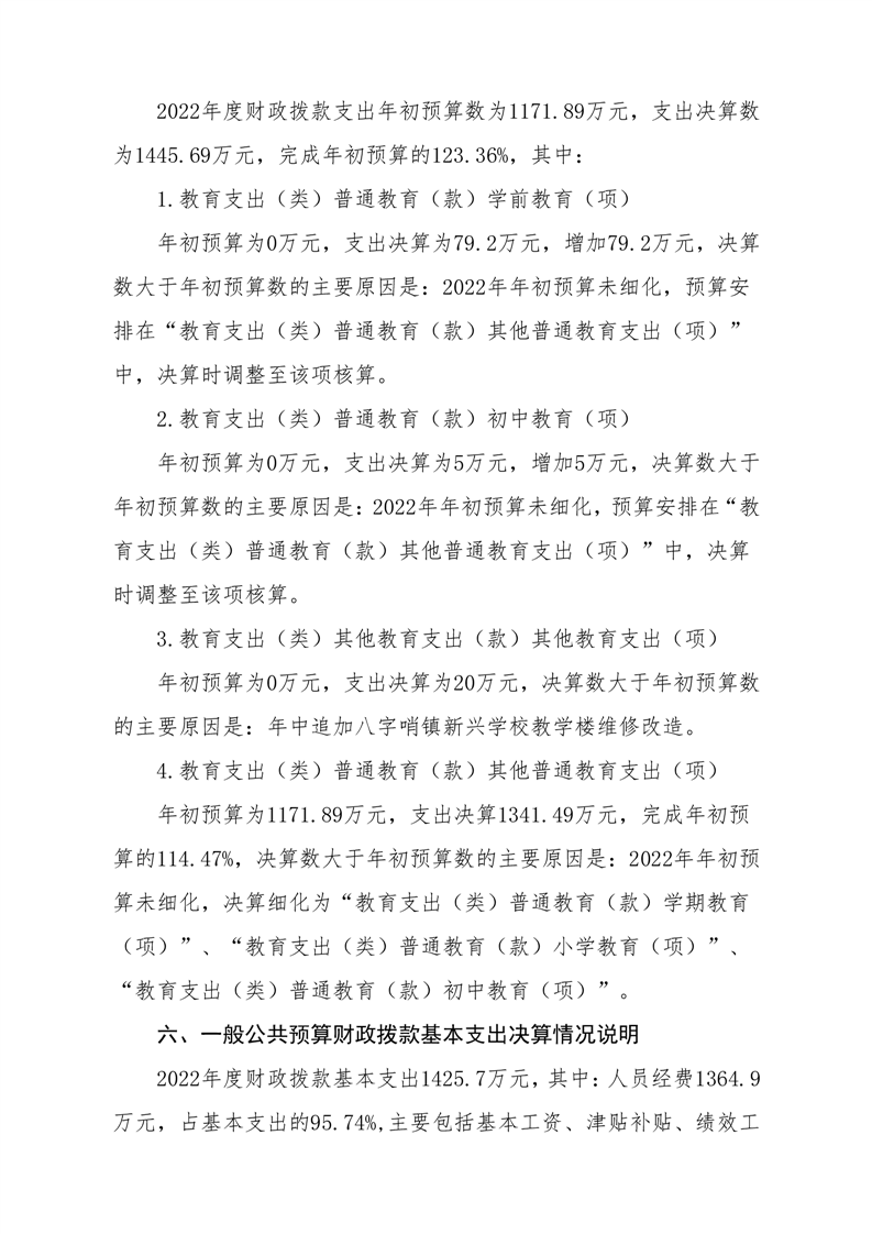 八字哨中心学校2022年度部门决算公开