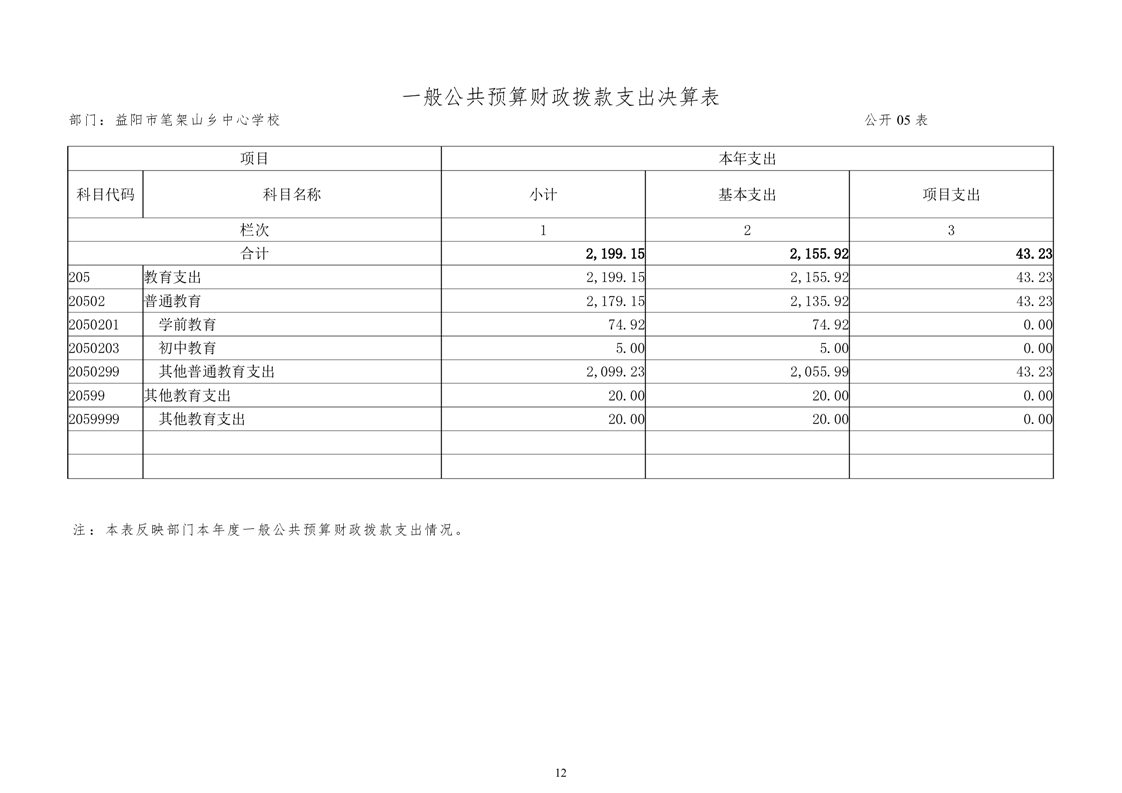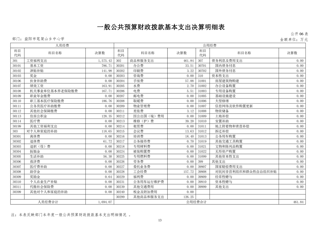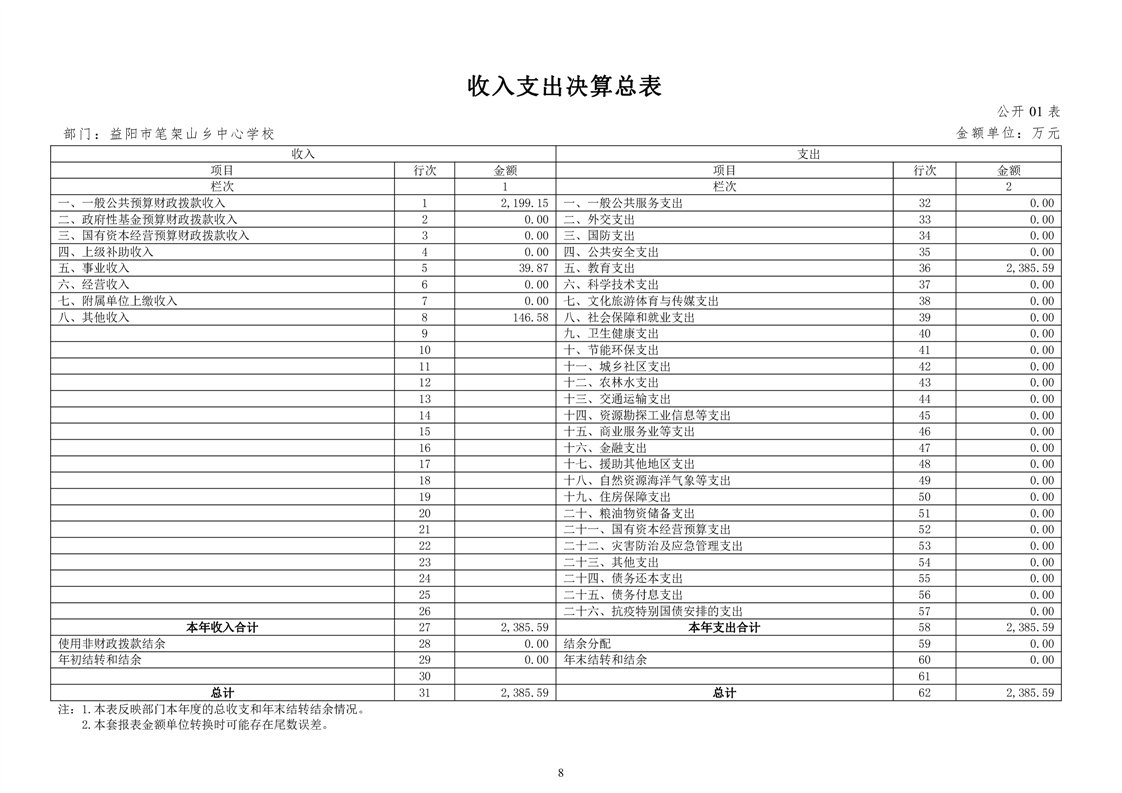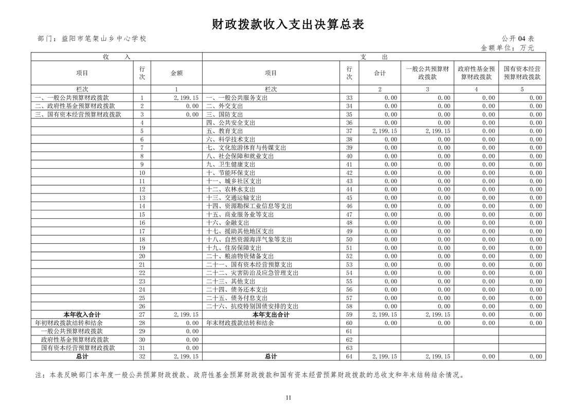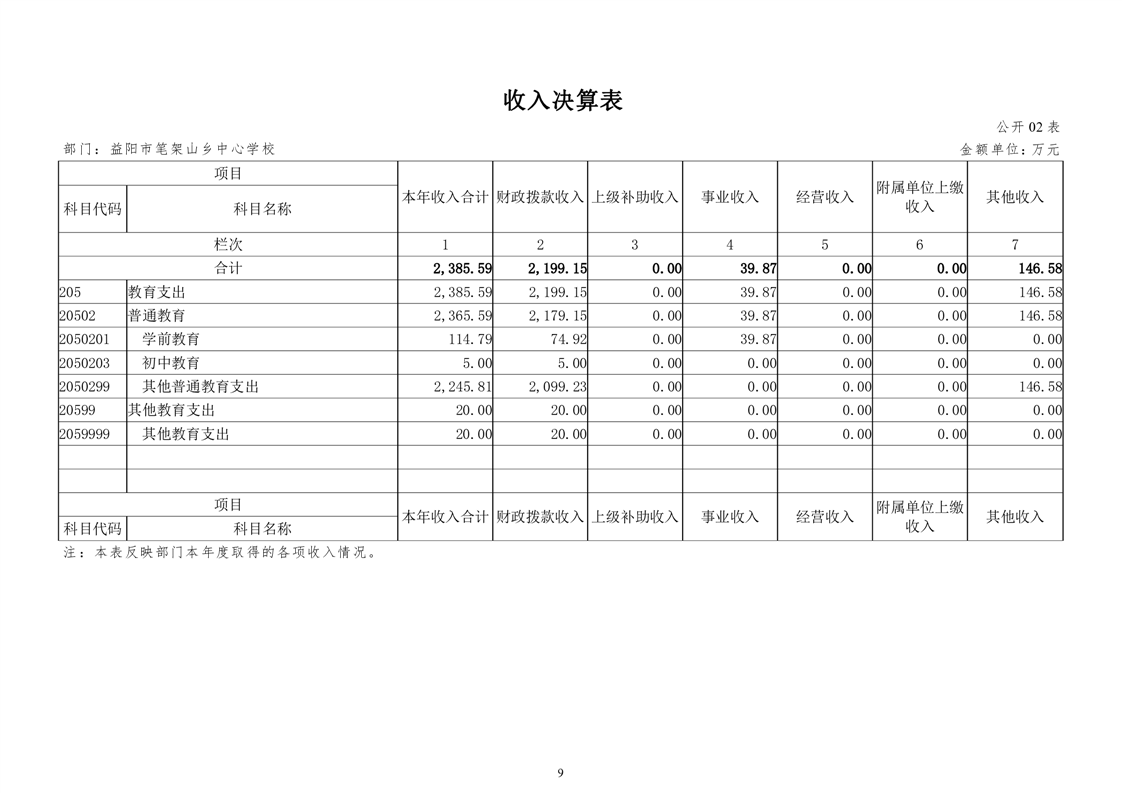 笔架山乡中心学校2022年度部门决算