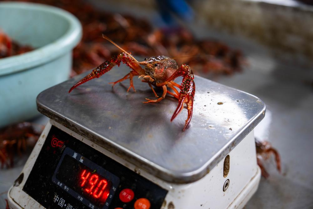 5月19日,商人在南县南洲镇南山小龙虾交易市场收购小龙虾。