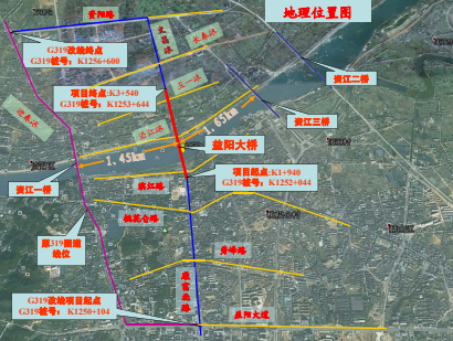 益阳319国道资江大桥(西流湾大桥)是319国道在益阳境内跨越资江的控制性工程,是益阳南部地区联系资阳区之间的重要纽带,对疏散中心城区交通流量、缓解中心城区交通矛盾作用显著。大桥位于现319国道资江一桥下游约1450m处。