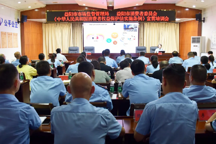 为深入开展“激发消费活力”消费维权年主题及《中华人民共和国消费者权益保护法实施条例》(以下简称《条例》)宣传活动,8月28日,益阳市市场监管局联合市消委召开《条例》宣贯培训会。中南大学法学院副教授、博士生导师、省消保委兼职副秘书长王红霞解读《条例》,市局党组成员、副局长彭益红主持会议。
