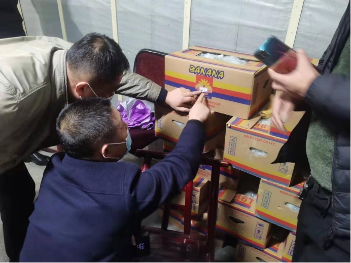 执法人员检查进口水果溯源信息 此次检查以辖区红联市场、秀峰水果市场、学门口市场、水果连锁超市、专营门店等为排查重点,以车厘子、火龙果、榴莲等为重点检查品种。执法人员全面按照进口冷链食品疫情防控要求,仔细检查每家水果经营户的主体经营资格,细致查看在售水果的进货来源、数量、品种、规格、批次等内容,认真比对进口水果的报关单、入境检验检疫证明、核酸检测证明、消毒证明等“四证”信息。 在检查中,执法人员耐心指导商家落实落细各项防控措施,要求经营者强化食品安全疫情防控意识,落实安全主体责任,做到不采购、贮存、销售无相关票证或来源不明的进口水果,严禁伪造、篡改检验检疫合格证明、核酸检测证明等文件,确保进口水果来源可溯、去向可追、安全可靠。