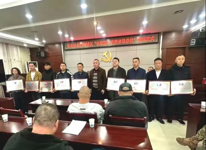1月29日,安化县市场监管局举行城区“省级放心消费承诺单位”授牌仪式,对31家创建放心消费承诺单位进行授牌。